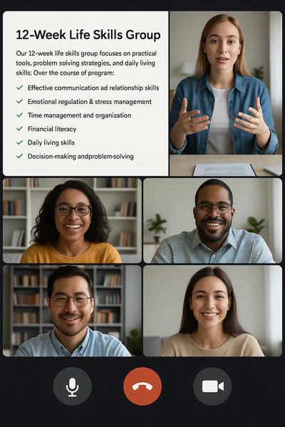 Our 12-Week Life Skills Virtual Group is designed to equip participants with the practical tools, problem-solving strategies, and personal confidence needed to navigate everyday life successfully.